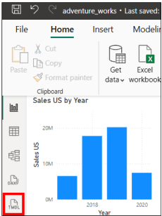 Als je Power BI Desktop opnieuw opstart, zie je nu links TMDL view staan.
