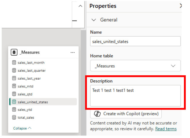 • Vervang vervolgens de TMDL-code van je measures met de output van je AI-tool.